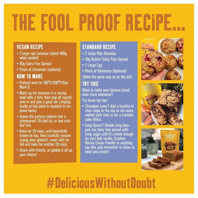 This Organic Banana Bread Mix is crafted from certified organic ingredients. This cake mix delivers authentic flavour without artificial additives or preservatives.
