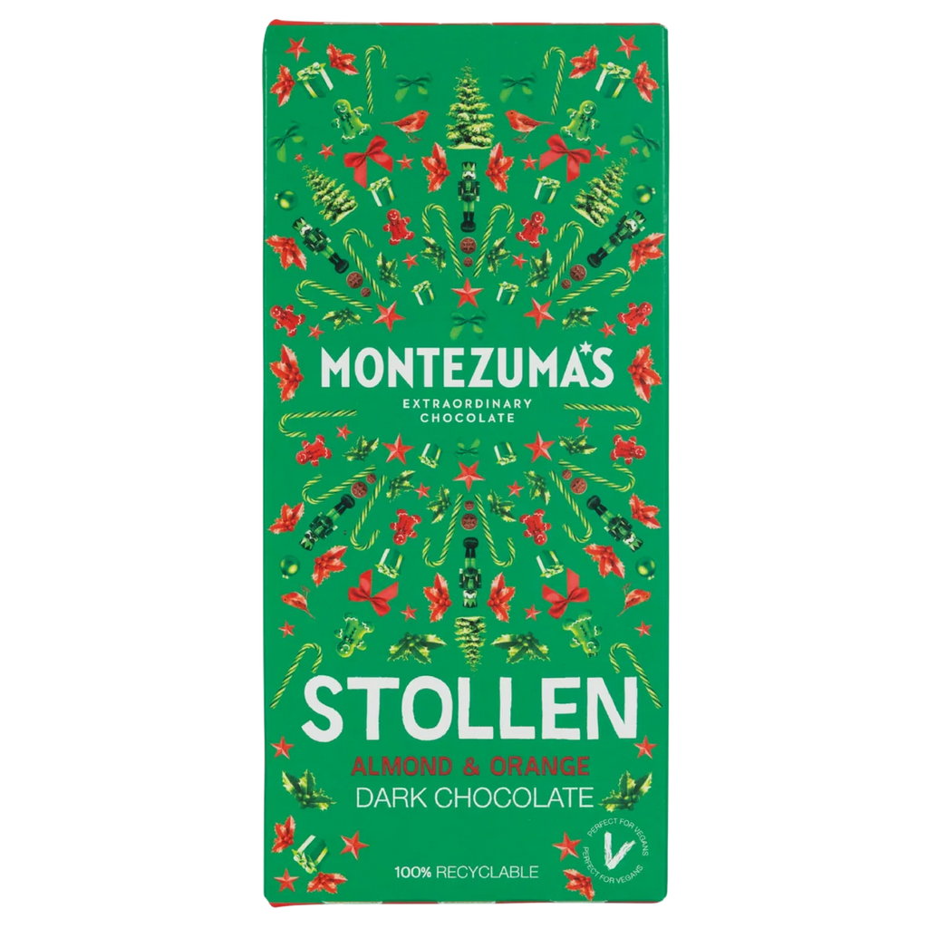 Montezuma's Dark Chocolate Stollen Bar combines premium dark chocolate with the festive flavours of almond and orange.